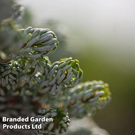 Abies koreana ‘Kohouts Icebreaker’ is an outstanding dwarf conifer that provides all year round texture, structure and foliage colour in rock gardens and containers. Forming a low-growing shrub with short, stubby branches, it bears distinctive, tightly curled needles which reveal white undersides, creating a shimmering, blue-silver foliage effect. Specimens slowly grow into small, flat-topped cushions. RHS Award of Garden Merit. Height and spread after 10 years: 30cm (1ft).