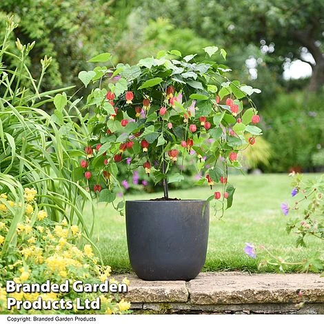 Despite its exotic looks, Abutilon megapotamicum is one of the hardiest of species Abutilons. It can be grown outdoors in coastal and mild southern parts of the UK, where it will survive down to about -10C. It is ideally grown on a warm and sheltered South-facing wall where its fine branches can be trained as an espalier. Alternatively, grow it in a patio container and bring it into the greenhouse or conservatory for the winter.