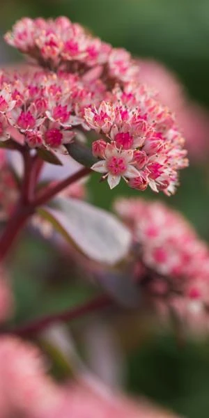 Dense clusters of dark pinky-red starry flowers are carried on top of strong wine red stems with succulent greenish-purple leaves. Similar in appearance to ‘Purple Emperor’, but we think stronger and more vigorous, this is an excellent Hylotelephium for the front of a border. In spring rosettes of smoky pale purple green leaves emerge, which contrast beautifully with purple tulips.