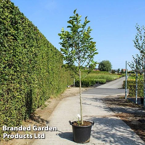 Native to Japan, this deciduous magnolia is the best choice for well-drained, neutral to high pH soils where most acid-loving magnolias aren’t suitable. Magnolia kobus is one of the few magnolias that grows well as a single-stemmed specimen, suiting large gardens where it develops into a medium-sized tree that begins with an upright, pyramidal form but slowly spreads with age. Although it is slow to achieve its full flowering potential, mature specimens are extremely floriferous. In March and April, it bears scented, pure white flowers with long, slender petals on bare branches. Leaves are oval and bright green. Additional interest is provided by yellow autumn foliage and distinctive dark red seed receptacles that split to reveal orange seeds within. Height and spread: 6-10m (20-32ft).