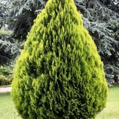 The Dwarf Oriental Thuja is a delightfully compact conifer. These neat, upright trees produce weatherproof, golden-green foliage which is gently aromatic when bruised. Platycladus orientalis ‘Aurea Nana’ is slow-growing, making it ideal for small gardens, rockeries or patio containers. These conifers are tough, evergreen plants that will grow in almost any soil or situation, requiring absolutely no maintenance and lasting for many years. Height and spread: 90cm (36″).