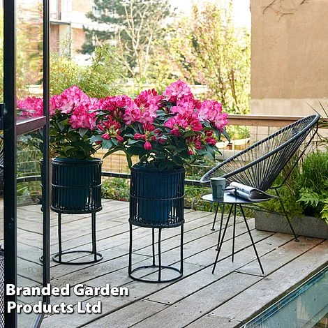 The result of over 10 years of specialist breeding, this exciting new hybrid rhododendron boasts stunning and rare bicolored flowers. The large blooms are held in showy clusters; each trumpet-shaped flower white at the centre with a striking and vivid hot pink frilly edging. Lasting for around a week longer than other varieties, the robust flowers are borne on a dense, vigorous plant. This acid-loving hardy evergreen shrub thrives in a shady spot, where it will light up your late spring garden. Ultimate height and spread: 150-175cm (59-69in).