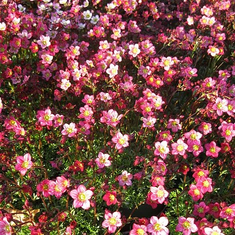 A useful little Saxifrage which holds an RHS Award of Garden Merit. Plants are cushion-like, and are perfect for rock gardens, gravel gardens or for growing in wall crevices. Unusually for a rock garden plant, Saxifraga ‘Peter Pan’ will also tolerate some shade.During the spring, Saxifrage plants produce plenty of small, starry flowers, above the mossy mounds of green foliage. Saxifraga ‘Peter Pan’ stays small, compact and is excellent for beginners. Height and Spread: 25cm (10″).